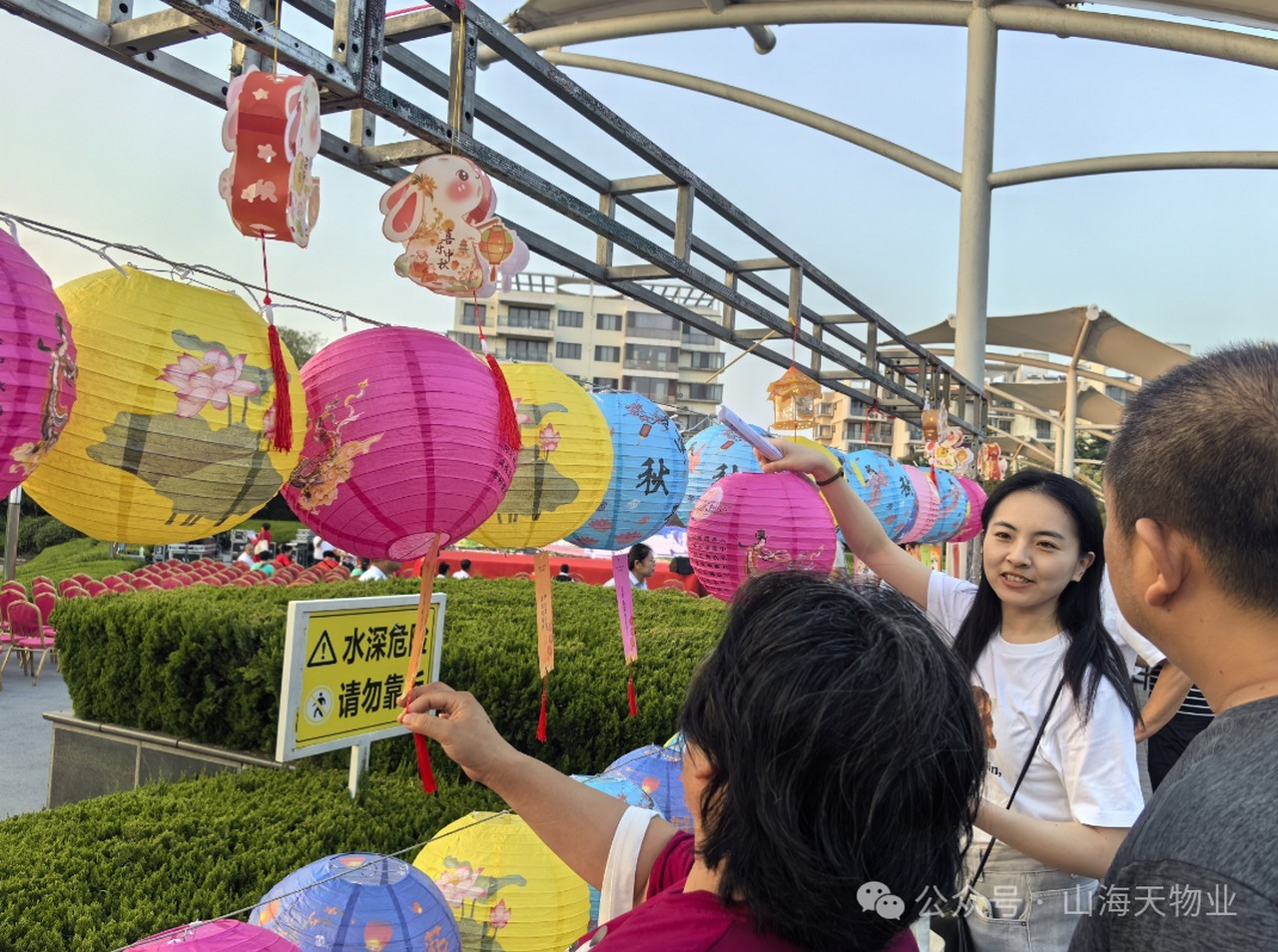 晚会特别设置了传统文化体验区,业主们通过猜灯谜、赏花灯等传统活动,感受中秋佳节的文化韵味。